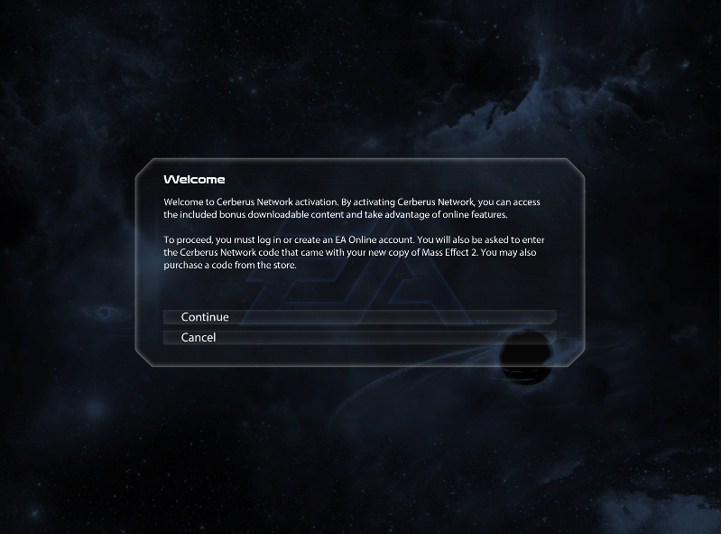 That's all well and good, I can deal with that. however, whether I select continue or cancel, it goes here: http://i682.photobuc...s/ME2issues.png