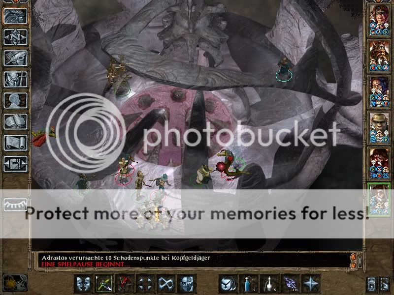 The Guardian was rather tough, mainly because I was acting stupid. My problem with this fight is that I simply don't know his script and his spell list very well, so I didn't prepare accordingly. As I soon realized, he can see through any form of invisibilty and while Achilleus was scouting, the Guardians AHW instantly killed him. Luckily, I managed to move him away from the party again while it was being cast, otherwise the effects would have propably been devastating (though Aedan was wearing the Belt of Internial Barrier). Also, while scouting some more, Argus got confused - should have learned CC for this area. There was no other choice but to pick up Achilleus' items and rest to raise him. At least Argus, with the Shield of Harmony and the Belt of Internial Barrier, managed to lure the salamanders away from the Guardian.