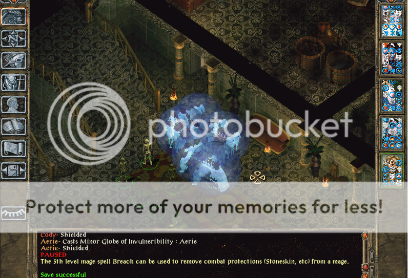 We got Haer'Dalis gem for him, and headed to the playhouse. The entire party memorized free action and chaotic commands x1 -- this to prepare us for the T'anarri (Master of Thralls). Haer'Dalis troop got captured. Before following them into the portal we did all the usual cleric/mage buffs except free action/chaotic commands (to save that for the Master of Thralls). The entire party had MMMs read. We entered the portal and the Yuan-ti mage close to us was disrupted by MMM and died before he could do any of his buffs. Our only spell cast was glitterdust and a flame-strike, rest was auto-attack.