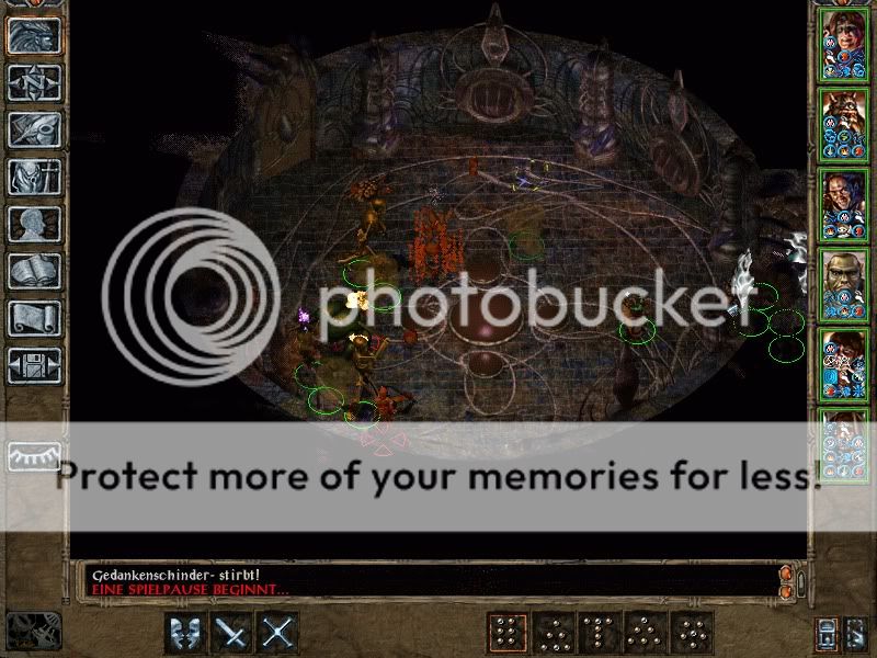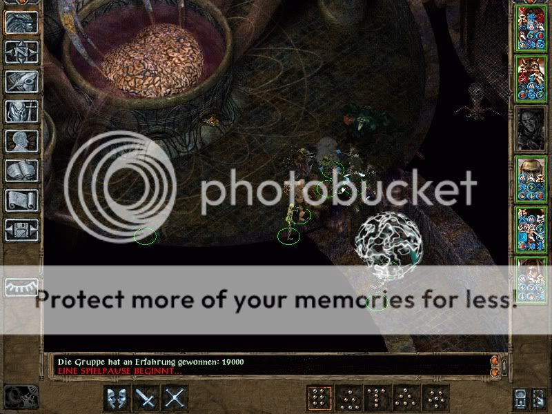 Something about general strategies, since I didn't describe the fights: I usually buff with prot from evil 3m, CC, death ward, (improved) haste, chant and bless for tougher battles, though I mostly protect Phobos, Aedan and Shakti, since I don't use the thieves too much unless there is an oppurtunity for traps or backstabs (they usually stay invisible until they are needed).