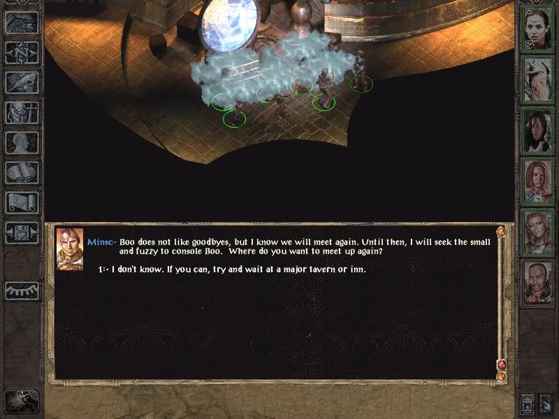 The only reason Detman stayed back though, was there was nothing he could do to assist without showing himself. He COULD scout as he has sanctuary, but it was unnecessary as Yoshimo was doing that role just fine. It does take some work yes, not as long as you think though, as I'm a fast typer. I basically had the dialog matched exactly what I did in-game, which of course is why I had to explain the meta-gaming I was doing...