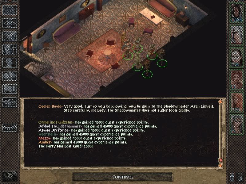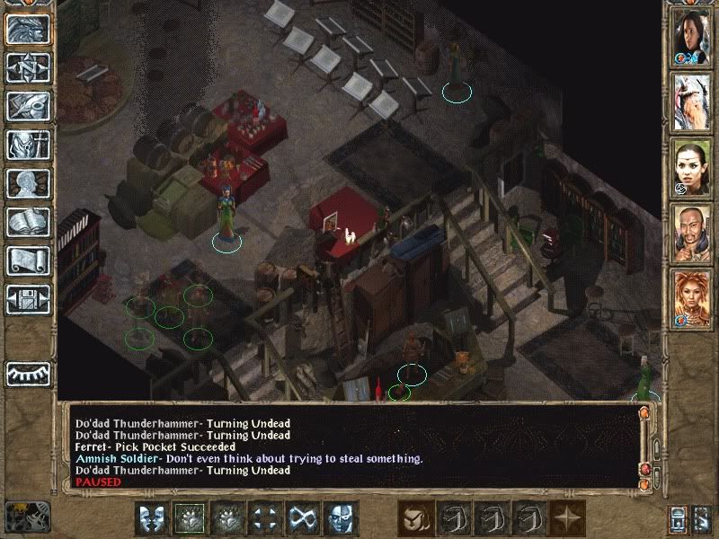I headed to the palace and destroyed Irenicus parasites, very easily though he did use his gaxx haste just to speed things up. Ellesime told Picenon that Irenicus that he is currently untouchable. Really? But are his wizardry skills better than thief skills? Picenon thinks not.
