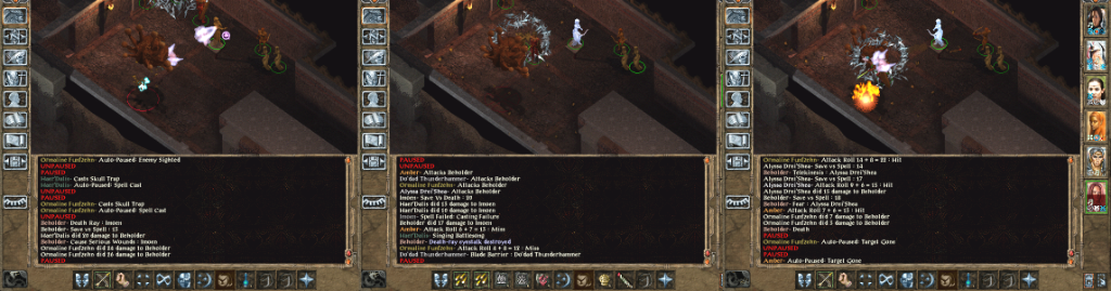 Spell Immunity: Divination, so that she could freely experiment on completely helpless victims. Then party resumed their work for Helm’s temple. No Baldur’s Gate playthrough is complete without a few backstabs, so here’s Nalia stabbing Neb with Celestial Fury: