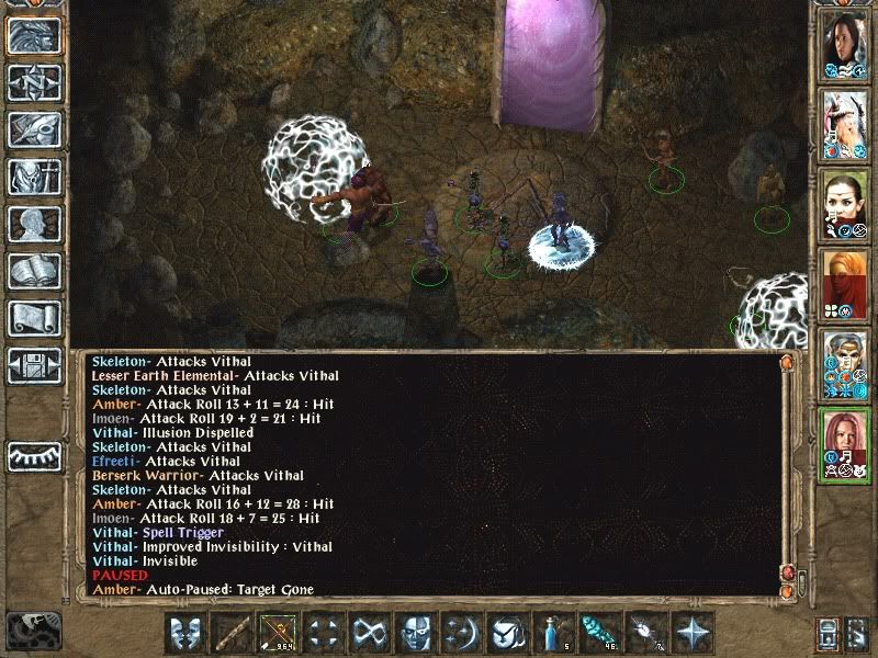 A mass of attackers appear, we start to fight but Viconia has to step back. Edwin and Imoen cast WotB and chain lightning but few attackers are killed. Their next choice, ADHW and skull trap are more effective. I manage to kill Jamis Tombelthen as their spells demolish the enemy.