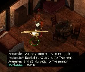 I had decided just to take a chance on accepting the guardian as the real one. However, in the event that wasn't required. Wolfsbane beat off one assassination attempt and then went upstairs. He saw a text message about an assassin attacking Tyrianna and used Dragonslayer to cast detect invisible, but at the same moment that cast the assassin struck - so much for paladinhood! Wolfsbane didn't waste much time before casting so this encounter really is one where you have no chance unless you know what will happen and plan for it ahead of time.