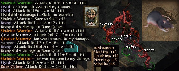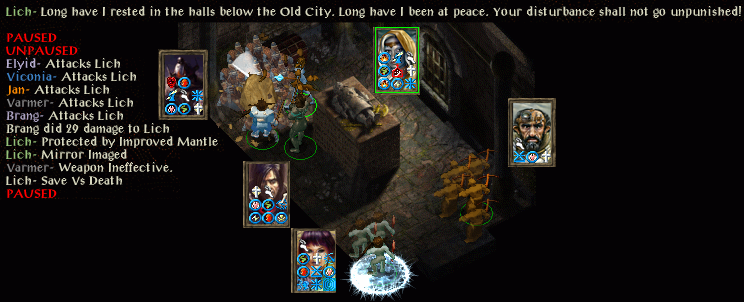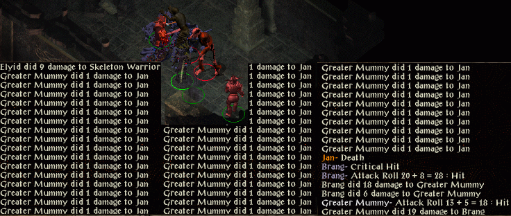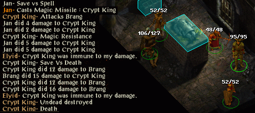 LOL. This is kind of a comedy of errors, now. I got Jaheira killed against a bone golem. And, in studying my own photos, I have really got to stop casting magic missiles against skelly warriors and bone golems, since they don't do anything against those particular monstrosities. Here's the one photo I managed to snap before I had to fight for my life with the rest of us:
