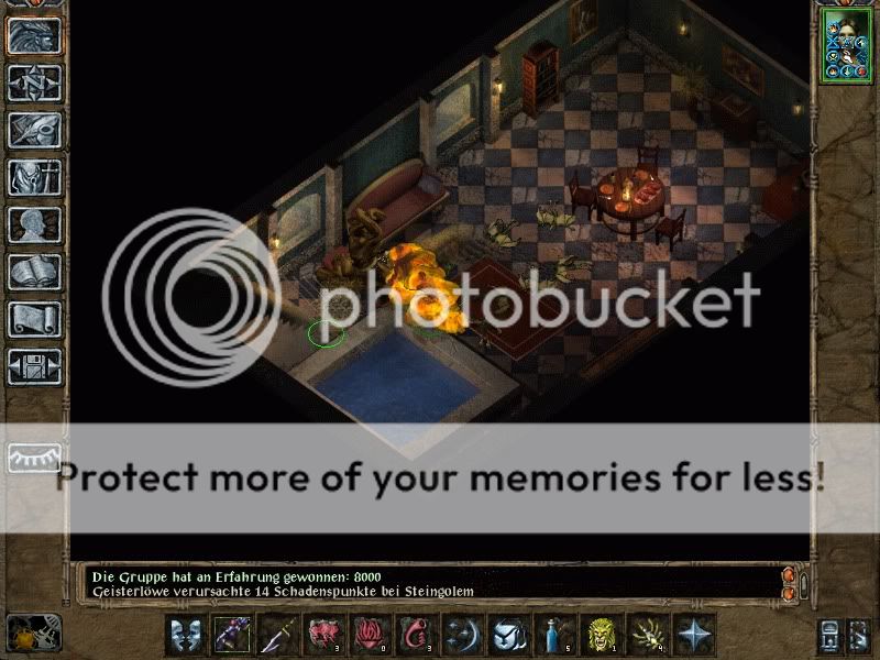 Anyway, I started the Temple Distric exploration by entering the Sewers to obtain another Cloak - Nothing here is a threat for fire elementals. Next was the sea troll for Roger, and then the Sewer Party (their mage once ended one of my most promising triology no-reload runs, so they became sort of an arch enemy for me). Since I didn't want to rest before dealing with them, I mainly had to rely on forest beings and my own Crowd Control, which is not a bad thing as you can see here. I had a nice 1on1 with the mage, who fell to lightning bolt spam.