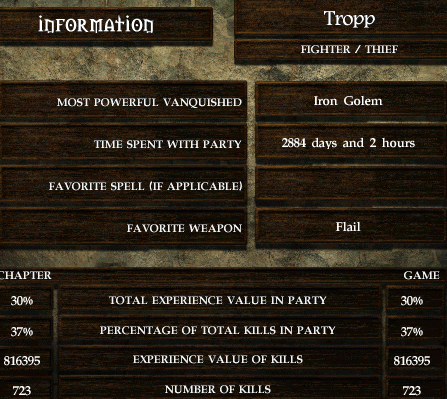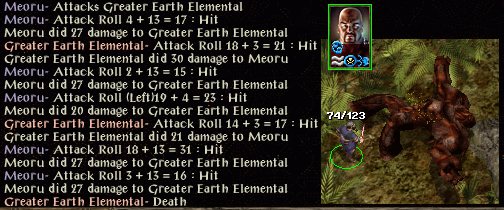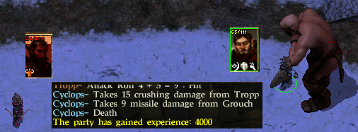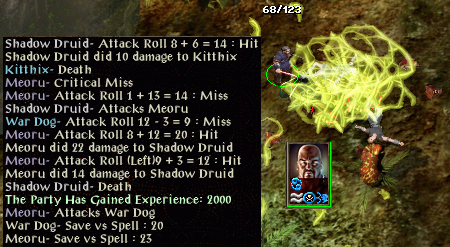 So Jaheira moved up with her +1 staff and alternated between healing Minsc and attacking. She didn't get any good hits in though either. Minsc is falling too quickly and dies. She is probably going to get held soon, so Yakman pulled back and picked up Minsc Sword of Chaos, though he isn't proficient with 2-hand swords, and started swinging, and used a haste potion. Jaheira did fall quickly, however the shadow fiend that killed Minsc finally dies, as does Jaheira.