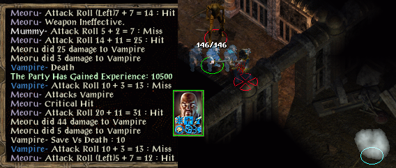 So the party heads to the graveyard. Corey_Russell knew it had to be in one of two crypts....well he guessed wrong -- and worse, it had a mummy and two shadow fiends! Minsc attacked one shadow with his sword of chaos, Jaheira cast a nymph (as a distraction), Yakman activated berserk and kept the other shadow busy, though Yakman can't hurt it, and Yoshimo starting pumping Minsc's shadows with +1 arrows.