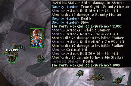 The Kua-Toa lair was cleared mostly with melee/ranged fire, though we did have a few summons helping while we were at it. The drow war party guarding the exit was soloed by Edwin. Edwin crept up invisible, did web/cloudkill/greater malison/web/cloudkill/fireball and then MMM the last survivor. Demon knights had 3 invisible stalkers, Ariel Servant, massive buffs. Both mages protected by SI:N. Finally I noticed what one of the demon knights was doing - spamming power word: kill! No wonder my mages usually die here, but not anymore now that I know this. Party prevailed with no party casualties. The strength belt went to Minsc.