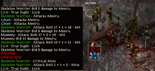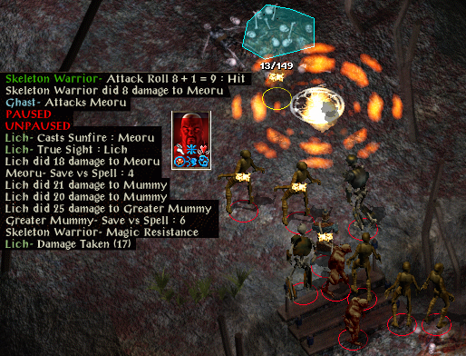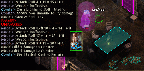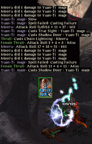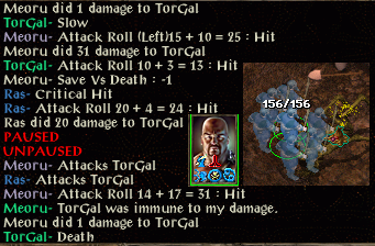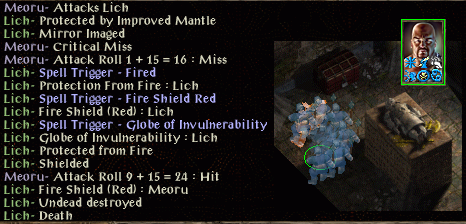 Mirror image and improved haste fail against a lich, and a timestop de-buff is endured. No problem, other than a symbol fear save at -4, was at -3. Immediately I start running around but having been de-buffed I am an easy target and my health starts to fade. This time there is no last-gasp escape.