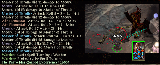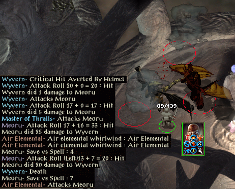 A wyvern and the Master of Thralls wound me and once they are down an air elemental hits me to badly wound me 49hp but now level 22 : Greater Whirlwind.