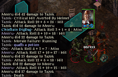 Pendal Fighter 11 / Illusionist 12. 212 BG1 kills. 204 BG2 kills. Torgal.Bulwark and Salde spend the best part of an hour in the wilderness southwest of Targos. Bulwark takes two consecutive critical hits and dies, meaning Salde has to pick up his gear while under attack from orcs. The Targos medical tent gets him breathing for the bargain price of 200gp and a few items are purchased before returning to the wilderness. Salde is protecting herself with Armour and buffing Bulwark with Bulls Strength. This makes the remainder of the area easier to clear. A few shamans are targeted with Magic Missiles as well as crossbow bolts while Bulwark melees at close quarters.