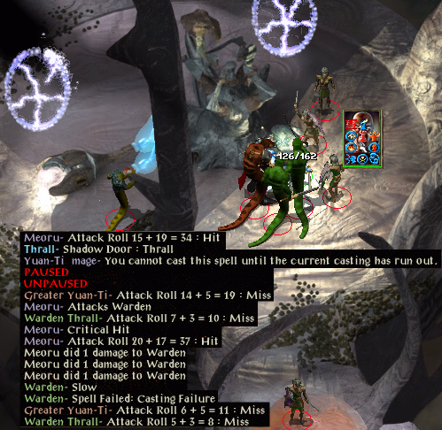 His contingencies foil my blade so I switch to the FoA. I almost have him but he uses another contingency so I switch to the greater yuan-ti instead. I've glugged an extra healing potion plus regeneration, and start to work around the other attackers. I feel in control despite having a room full of casters targeting me; at least until a double skull trap obliterates the opposition. There is no sign of the warden so I look back and realise he has died but can't see how I'm attacking a thrall and no message other than he just dies. The FoA finishes a final yuan-ti mage and then I de-activate the cells using a green orb. Haer'dalis and Raelis Shai thank me and I return to the playhouse.