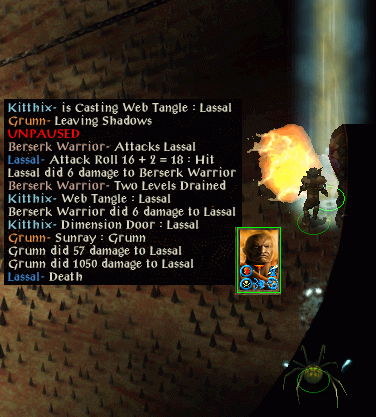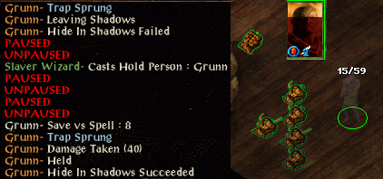 This is not good, and the tricks playing on my mind see me try to backstab a fidgety Duergar mage. Stand still. He fiddles so much I don't even get to attack and have to run, almost dying. Ilyich has taken two poisoned arrows though and they are spread out so I mount a clean-up opertation. Several chunky backstabs sort them out and I shut my mind to the voices. The last two duergar are near a cambion so I kill them and decide not to release it as I've read that hide in shadows is useless against such a foe. I move back to search for a large trap and accidentally tread on it. Poof, I've gone and all that remains is the strange voice.