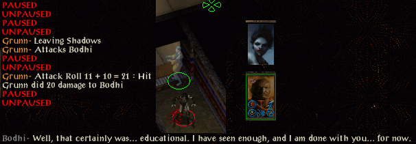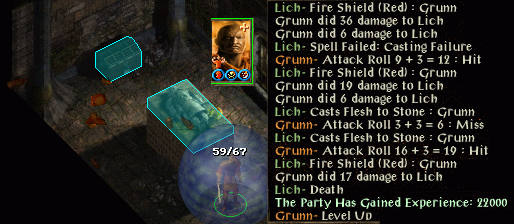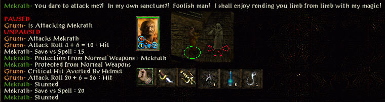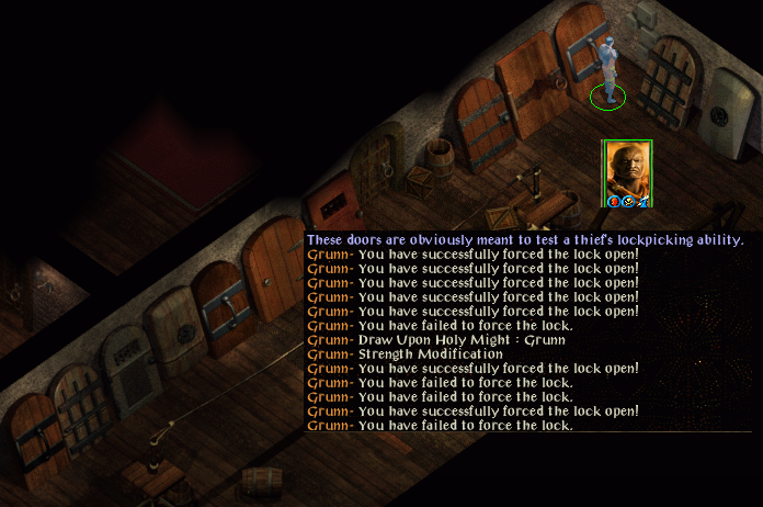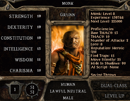 Ganger noticed immediately that things were not going to be easy in the dungeon when he struggled to overcome the lightning mephit. All his skill points in BG1 had gone on stealth, which has made that passable, but by no means reliable yet even in dungeon environments. His find traps and open locks skills rarely work even with the use of DUHM, so he was strong-arming things (DUHM getting strength up to 19 and constitution to 17) in order to progress.