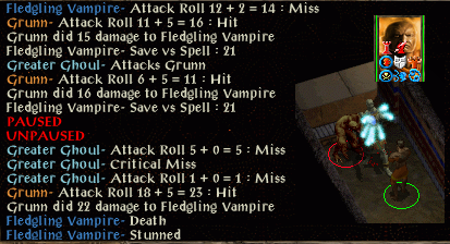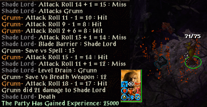 The only thing he didn't manage to kill was the doppleganger, which got caught behind the door somehow. Ganger could feel it (had to detour round space when moving), but couldn't see it from any location. Ulvaryl the vampire can be difficult for solo characters to kill before she goes gaseous, but a backstab / firebreath combination did the trick here. I thought Ganger might be in trouble at the last encounter when her backstab was a critical miss, but poisoned arrows successfully prevented the assassin caster from completing any spells.