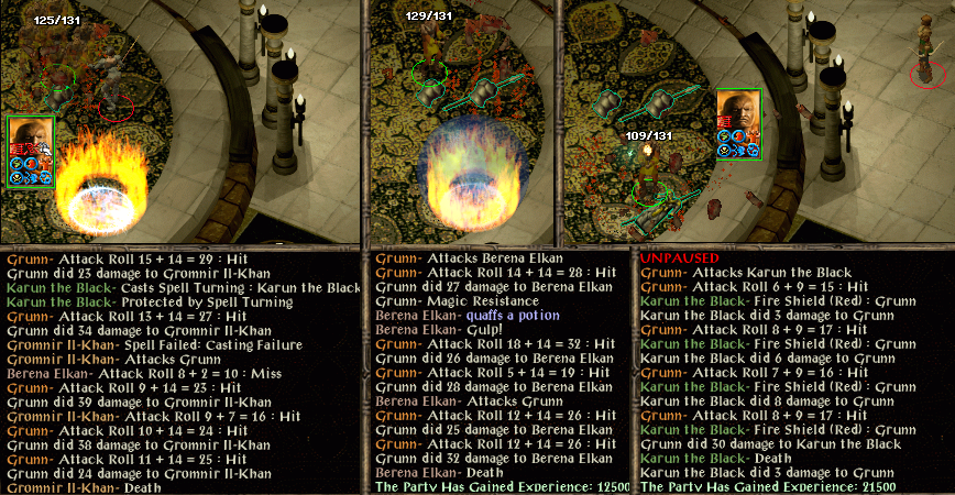 Load SoA. Grr. Quit. Load ToB. This time I glug potions of heroism and absorbtion, starting with the girdle of bluntness. I remove the mislead, drop the fighter and start on a thief - no sign of the cleric. I'm badly wounded as the timestop hits and take more damage when it resumes. I'm also blocked in so glug a potion of invisibility and run as everybody mills around