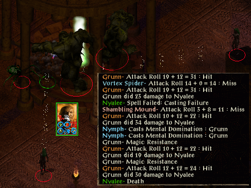 Nyalee via the friendly merchant Karthis al-Hezzar. A pair of shambling mounds resist my fists so I GWW Celestial Fury instead, having to step back once to heal and a second time for a berserk warrior to shield me. Another plane rest and it is time to find
