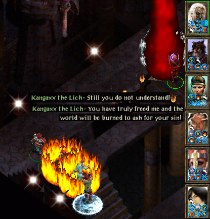 Krimlor asks Grond to go back to the City Gate lich room and search carefully for Pot’s lost finger which must have been err blown off in the heat of battle. Grond refuses until Krimlor points out the archer has the sharpest of eyes and keenest of senses, so we leave him to it. We nip to Umar, recruit Valygar, return to the Slums and open up the Planar Sphere before telling Valygar he’s on his own. Then we race back to Grond who had just about given up on us and ask if he’s had any luck. Pot is careful to keep his finger bent until Cassia rubs some ointment on it and loudly states that it will grow back in no time.