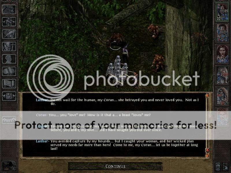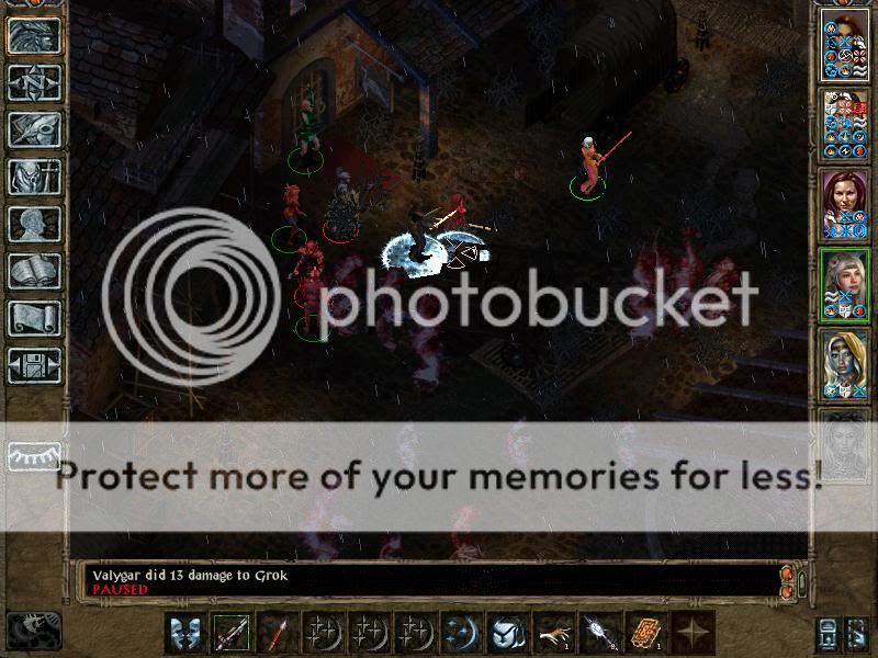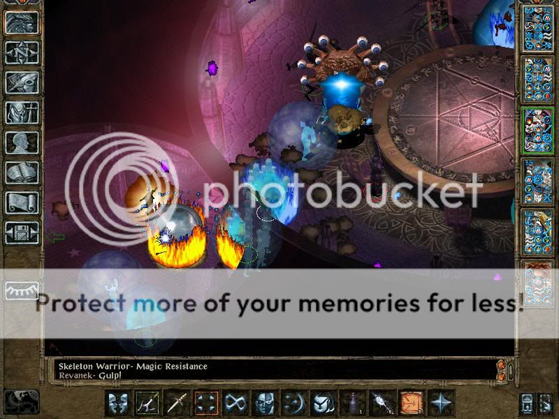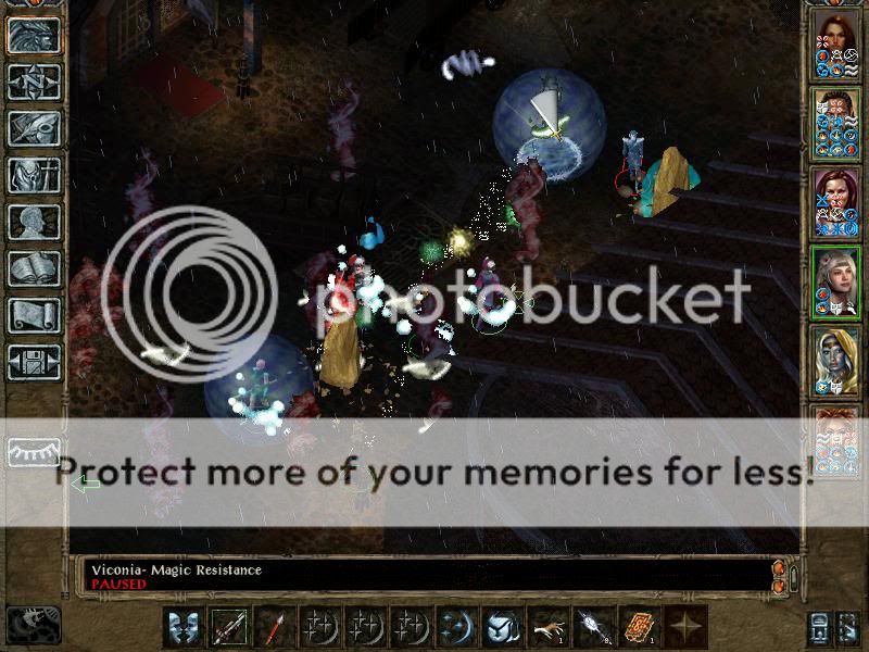 Hmph yeah, not very great tactics with a high-level party. Not much skill, not much thinking, there's room for plenty of mistakes, and the tactics are not that great either - summons, proper buffing, HLAs and stripping enemy mages of their protections. But unfortunately IA 6.0 isn't soloable due to in-game implemented cheats which prevent certain protagonists or solo-characters (well, fighter-mages to be precise) from gaining certain powerful items (like scroll of Spell Immunity or robe of Vecna). Also, such protagonists are subject to cheating monster scripts. If for example such a character enters the Slaver Compound, he gets his spell protections dispelled without reason or warning - it just happens. Also, powerful enemies (like Orcus) have cheating scripts vs soloers which will allow them to, for example target such a protagonist with Purge Magic (which dispels all buffs except undispellable ones and isn't stopped by SI:A), while at the same time, they do not do such things (i.e. they fight in their usual and honest way) when challenged by a (powerful) party of 5 or 6.