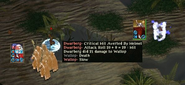 After helping a svirfneblin village the kuo-toa enclave was attacked. Dwarberg took a slight risk there in attacking one of the Demon Knights in melee (risking decapitation), but the Knight only managed one (missed) attack before being overwhelmed. The Prince failed to survive a GWW even without bothering to taint him.