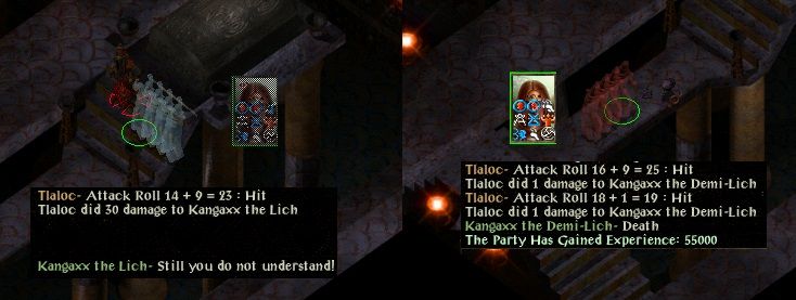 By the time Akira finished the second batch of duergars she has taken substantial damage. The three baby healers proferred by Imoen took care of the damage- along with Akira's Bhaalspawn power heals.