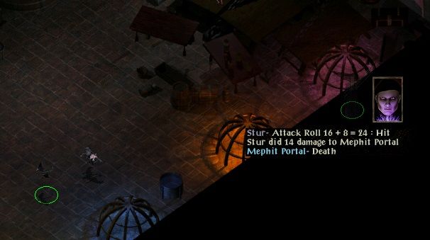 - for the portal room Stur attracted the mephit's attention before going back to be made invisible. That allowed him to lock 2 mephits in the room and destroy their portals. The magma mephit didn't want to move so Stur took running pot-shots at its portal - finishing it off before needing to use any healing potions. The familiar then occupied the radiant mephit, while Stur trashed its portal.