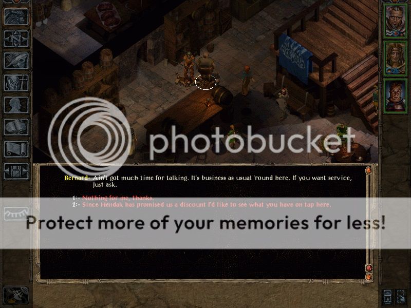 I've freed Hendak and still had some time left on my thievery potions so Adaes helped himself, via five finger discount, to the higher level spells Bernard had to offer, luckily he didn't catch me. I agreed to help vanquish what remains of the slavers, we entered their compound through the slums directly, avoiding the sewers for the time being. On our way to tell Hendak of our success we picked up Lilicor for Keldorn.