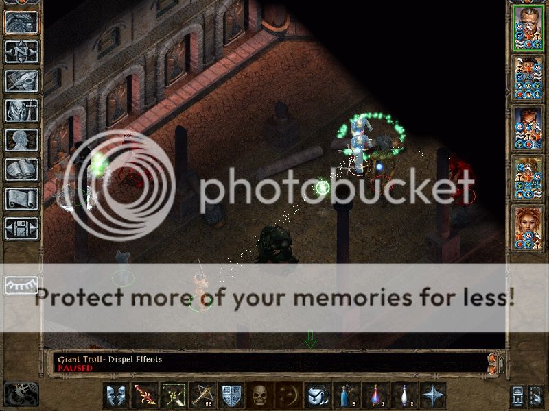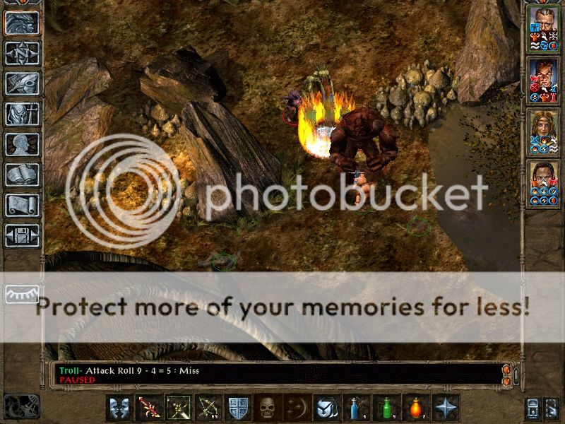 Adaes spent over 3 days escaping from his starting zone but managed to survive Irenicus's dungeon. After a quick stop at a merchant in the promenade to free up some bag space, it was straight to the Temple district (after a mandatory stop at the Slums) to acquire Keldorn. Few monsters were met in the sewers on the way to Keldorn but our trek back up to the surface was stuttered momentarily by pathetic slimes and kobolds. Cernd was next on the list so we traveled to the city gates to get a current map of Trademeet. Part way through our 20 hour crawl to Trademeet we were "stopped" by a band of fools who were quickly dispatched by a hasted Keldorn, it really wasn't fair. We then completed the trip and promptly scooped up Cernd and paused to prepare for the many battles with trolls to come in the not so distant future. An 8 hour power nap later and we’re off to hunt us some trolls.