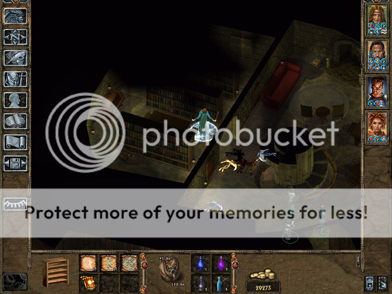 Completed most of CI with Immy. Assasins at the end of Irenicus dungeon (dangerous due to backstabs) were dealt with using web + minor globe and free action. One backstabbed Aleks, but did no further damage, collected a couple of potions of invisibility here.