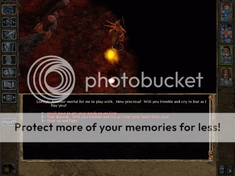The marilith damaged Aleks quite badly, a nabassu also wandered over from further in the crater, you can respond to him with one of the dumbest dialogue options I've ever seen, perfected if rp'ing a PC with 3 intelligence.