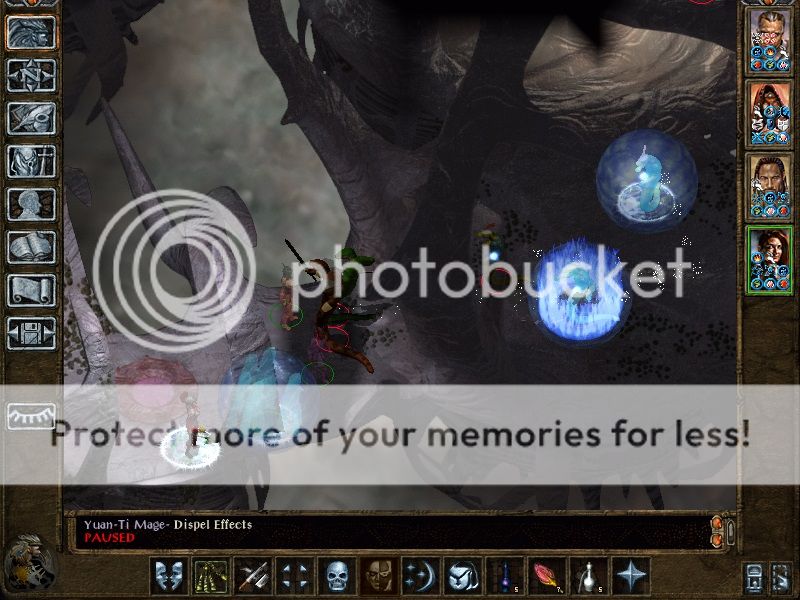 Then the last Yuan Ti mage warps in a round or two afterwards; he died quickly although he was halfway through casting an (uninterruptible - I hit him several times without the "spell failed" message) enchantment spell on my unprotected party.