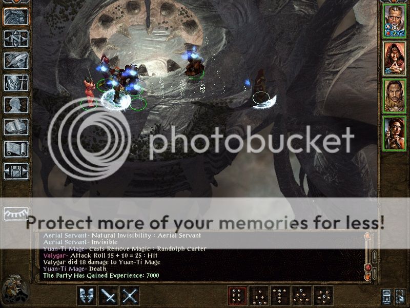 I should mention that Randolph is limited to 4 sixth level spells, I decided the best way to divide them was one protection from magic energy on self (in case of wilting), one on Keldorn as he's the first fighter through the door (he was breached earlier, I refreshed ProFire but couldn't refresh ProME) one improved haste on the swash -> cleric and one for Valygar to improve the odds of spell interruption... Yeah, I didn't think that one through too well.