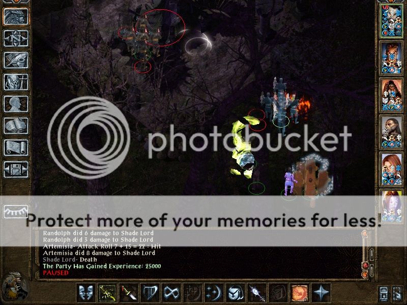 Shade Lord; with six characters in a small battlefield I thought this might get annoying due to masses of shadows restricting movement and having to juggle short duration NPP spells. Well I managed to run the drainable party members out of his LoS immediatley, in the next round Eryx used Pierce Magic (from scroll) and sorc breached the Lord, Leksa cast NPP on Artemisia so she could approach to help out. What do you know, nobody even took any damage. Defeating the shade lord got Artemisia to level 10.