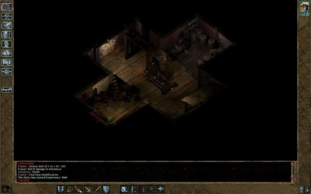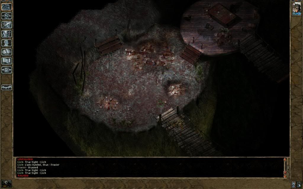 After Lonk exploded a GWW on Irenicus would have killed him, though Frasier retreated and waited until he had remembered his lines. Frasier accepted Saemon's offer and soon found himself in Fish City. Convincing the spectator to let her look inside the chest got Frasier to level 35 - GWW. She killed the king (smite punching him through a wall, but fortunately leaving his equipment on the ground where he was) and then the prince before descending a rope to the Underdark.