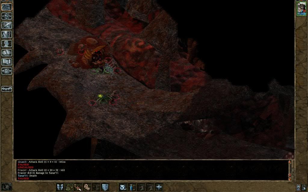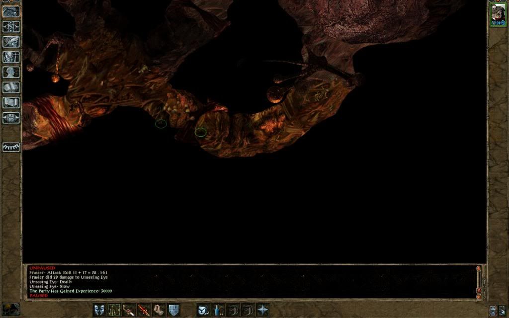 After helping Phaere with a beholder, Frasier went to the illithid lair and quickly whipped through that (level 38 - hardiness; level 39 - GWW), although he did get intelligence drained down to 4 at one point when I got a bit blase about attackers and was hit simultaneously by 2 illithid! Simyaz threw his life away in a vain attempt to get the silver sword before Frasier finished off her work for Phaere - getting her 40th and final level in the process (HLAs totalling 3xH, 1xWW, 13xGWW, 2xPA, 1xCS, 1xSm). After the ritual ended painfully for Phaere and the Matron Mother, Frasier quickly ran out of the city and returned the eggs to Adalon.