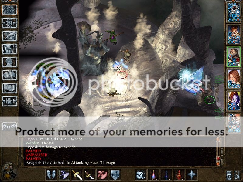 Immediately after the warden sees Eryx, his nearby Yuan-Ti mage fires a spell sequencer with Haste and Fire Shield, so Eryx throws Remove Magic at them (no point casting it at the Warden, I'm too low leveled to dispel him), but the other two mages hadn't triggered their buffs yet! So the party ended up fighting two buffed snake mages alongside the warden.