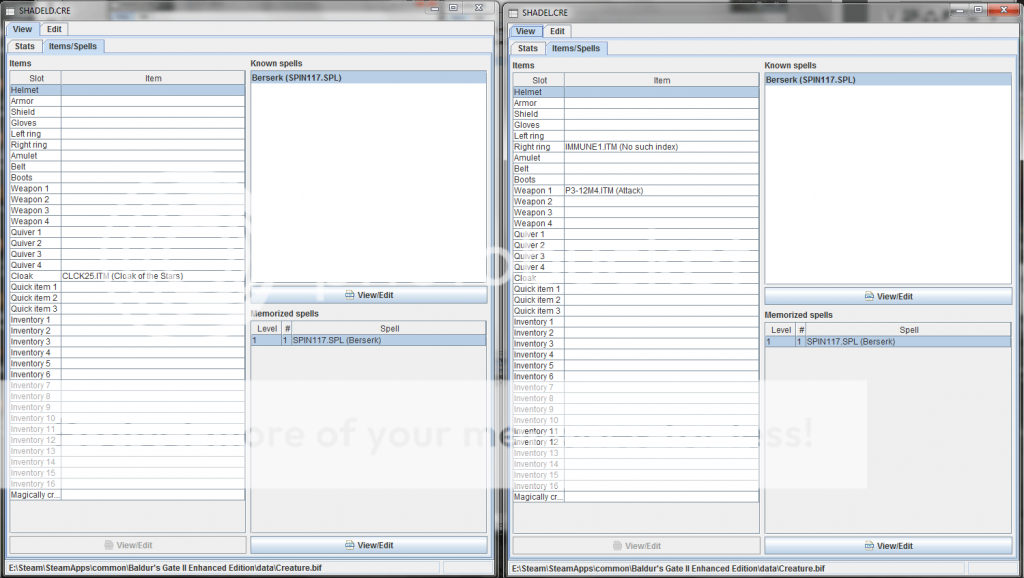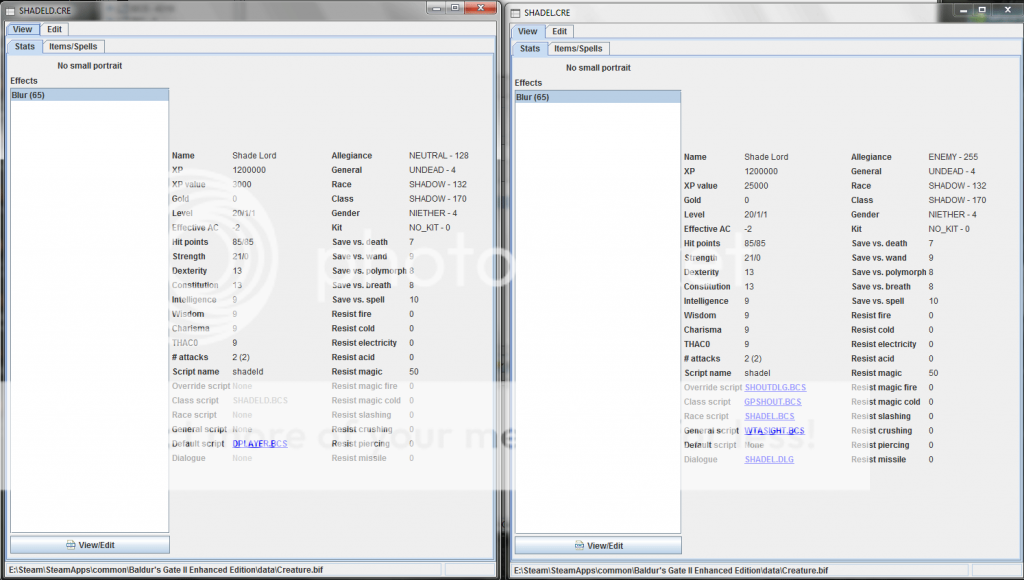 Well, I've tried hard but can't find neither *Make Shadow* nor *Shadow Drain* spells (both by find tool and manual browsing of SPL files)... There are several Level Drain spells in *innate* category (SPL files) but none of both those abilities. Maybe I'm doing something wrong (and I'm not a pro with NI...).