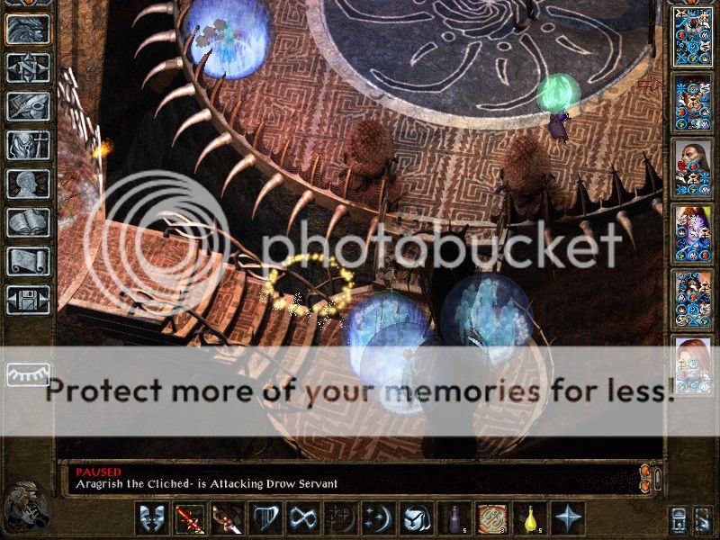 I've tried a lot of stuff. Tinkering with area script (my first guess was .baf was overcrowded), tinkering with Ulitharid/Flayer scripts etc.; but to no avail. I'm quite sure SCS21 didn't have this problem. I've made a new install, w/o "Improved Mind Flayer" from SCS and used bits of Tactics instead. Anyways, this battle you created where they teleport near you looks awesome, to say the least. I'd probably use it anyway. ![]()