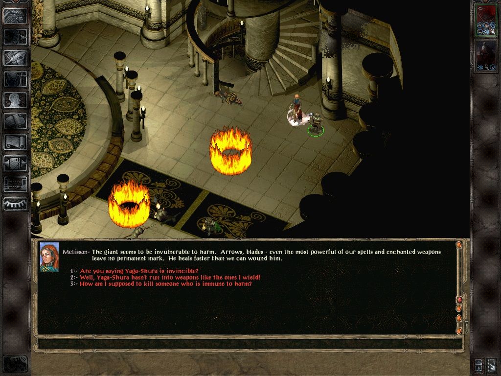 I tried using the solar as an obstacle to keep the mariliths away for the short period required to cast spell immunity: abjuration. I thought that would allow her to keep a stoneskin up and give her a reasonable chance of taking out enemies one at a time. She successfully manoeuvred in order to cast the spell, but she obviously got too close to the solar in the process and it switched from range to melee attack. Despite her best efforts she was now only moving at a crawl and the solar got 2 rapid attacks in. One final hit after this screenshot and she was dead - before her contingency even had time to trigger.