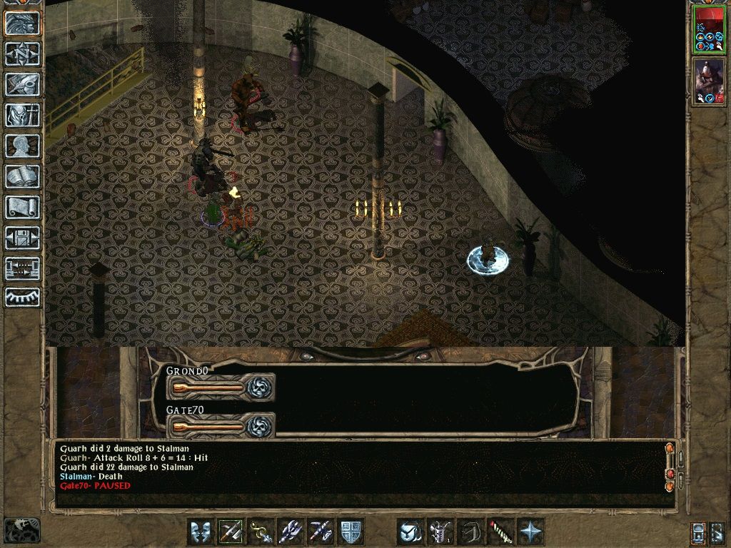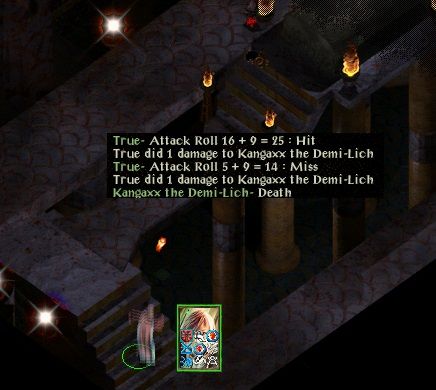 That was a shame. The slow movement at the end was nasty, but I've come across that type of effect a number of times before (it happens quite regularly in Thaxy's cave). The real killer though was my failure to prepare sufficiently in advance for that group. That was partly because I hadn't realised planetars would be so useless against them, but also reflected a desire to get on quickly rather than spend yet more time in preparation (the fight at the Throne had taken nearly 3 hours to that point already). If Grit had produced a simmy in advance and had more lower resistance capability memorised the fight would have been pretty easy. I also suspect it might be possible to short-circuit it entirely by killing the fallen solar in a time-stop before it could summon any help (though that type of use of time-stops tends to be buggy anyway).