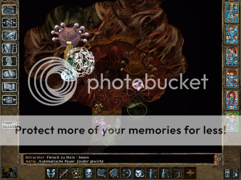 Hasted skeleton warriors and Jaheira took care of some blind priests as well as the Unseeing Eye itself, plus some more beholders. Soon, Ghaal and the remaining cultists were destroyed.