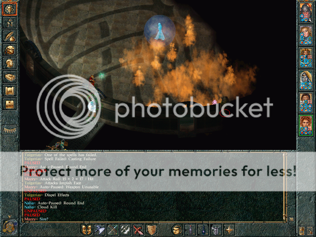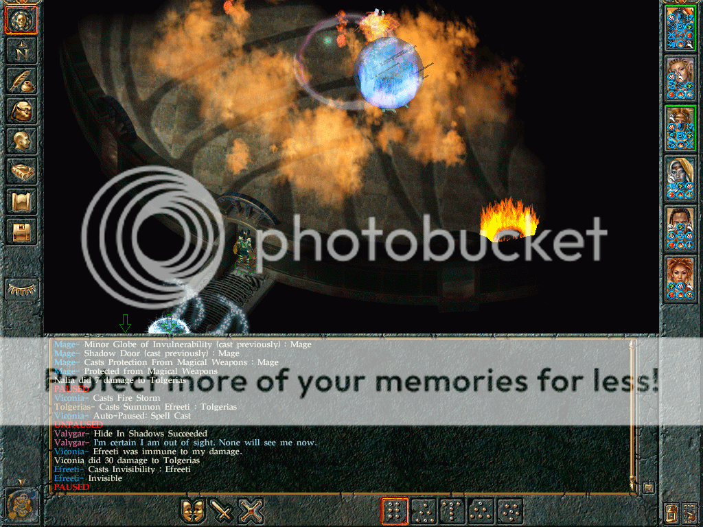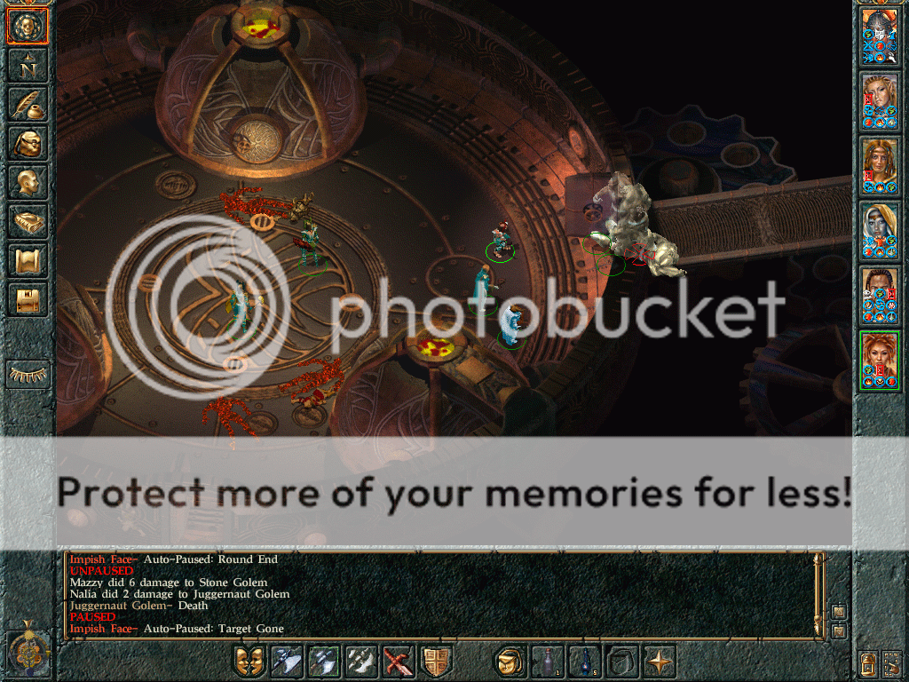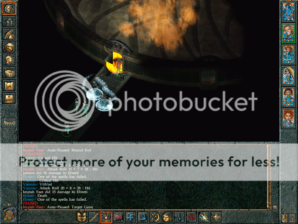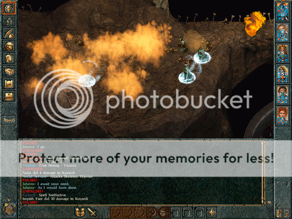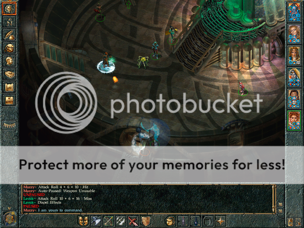 I found some time to play again, and Valeria entered the sewers to do the cult of the eyeless quest. First, a lich was attacked and sunrayed before being able to use his time stop. Downstairs, Aerie had a deva and some skeleton warriors take care of a beholder group. Next, Jaheira healed the demon inside Amaunator's temple.