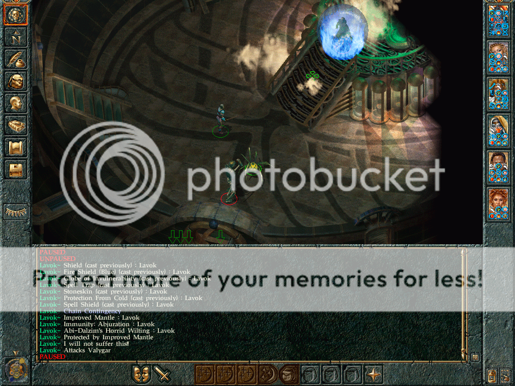 Valeria also decided to take on the Twisted Rune. After buffing and summoning skeleton warriors, Imoen trapped the lich, the party killed the vampire and the fighter, a deva helped with the beholder, and the mage was defeated as well.