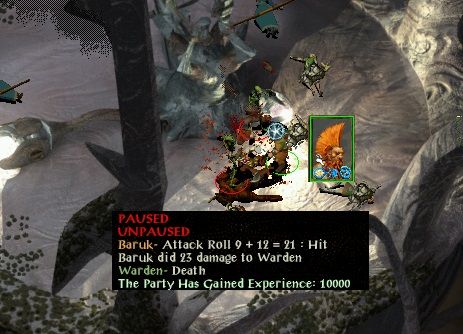 Mekrath was poisoned before he could buff and his yuan-ti coughed in a cloud. Haer'Dalis was recruited by accident, but took no part in any fighting on the way to the Planar Prison. There was another potential problem at the start of that when May was sent to sleep by a Pixie ****** stab - his contingency was supposed to generate a dispel magic this time, but there was no sign that had actually been cast. However, he'd got a skull trap out before that and the remaining enemies were finished off by Blaggerd well before May's stoneskin ran out. Working round to the Master of Thralls some summons helped take him out before moving on to the Warden. A combination of poison and skull traps took him down very quickly and allowed the duo to escape the prison. They've just arrived at Umar Hills ready for their next challenge.