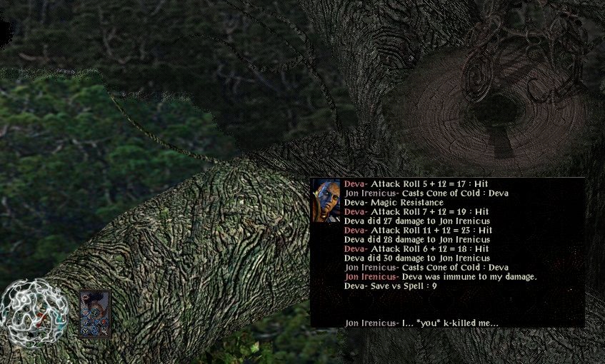 Keldorn is stunned by the welcoming committee and is the first to die in the Planar Prison. Jaheira raises him, doing the same for Minsc and Dorn after the Master of Thralls holds and kills them. The Master of Thralls only failed to hold Blaggerd and Keldorn, the inquisitor struggling to stay alive while the Blackguard was never in any danger. Two wild dogs are sent towards the Warden with the party following a round or two later. There isn't much to tidy up, just a pair of salamanders and a confused Warden who dies almost immediately.