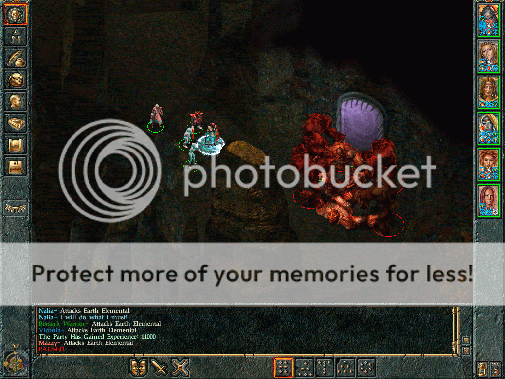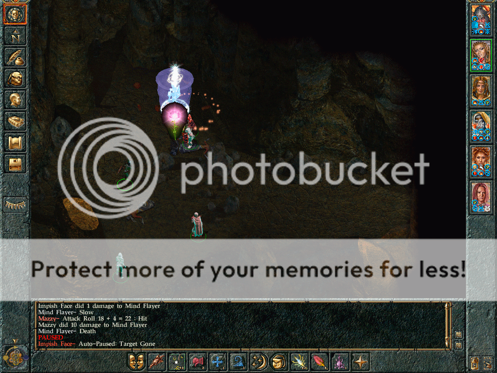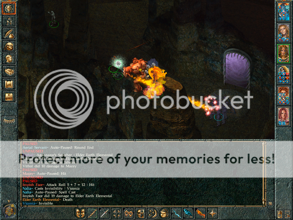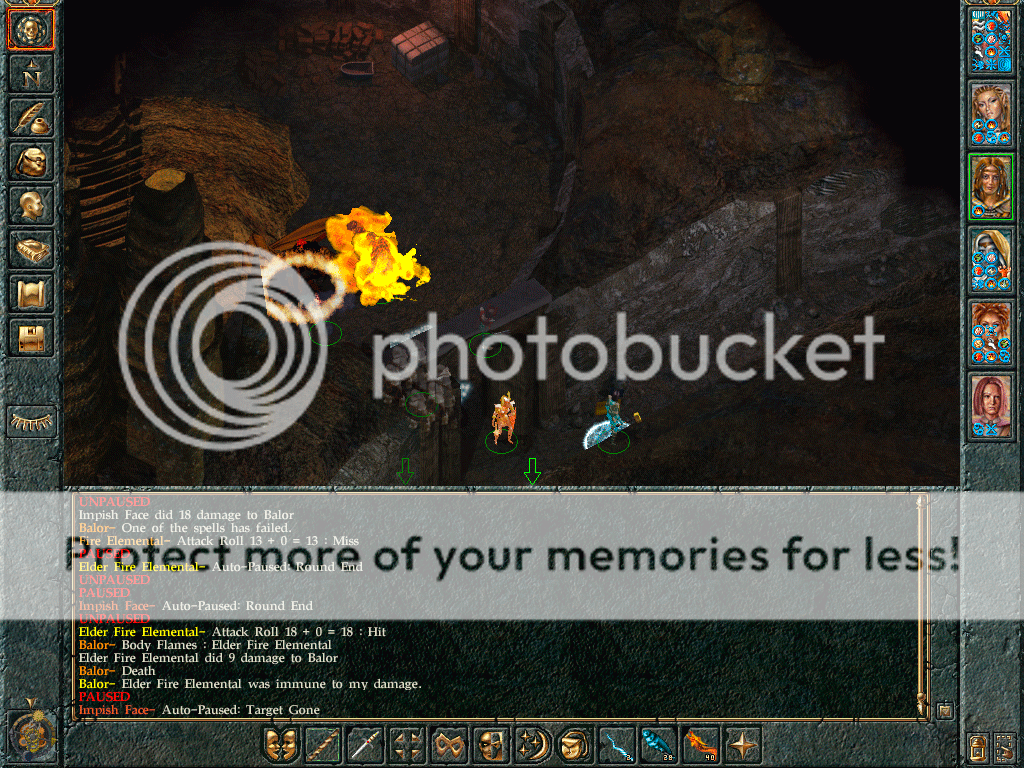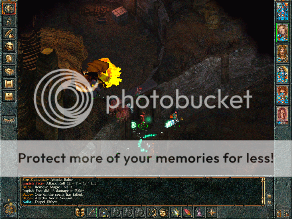 The troll fighters... aren't. At least until someone visible approaches them. They don't survive, their trolls were very reluctant to die once knocked down but after a few whacks with the FoA they stayed dead. Kyland Lind and his bunch got Web, a skeleton, Kitthix, and rage and didn't manage to get off a single offensive spell. Instead of Belm, we get... an iol Gem. Adratha is left alone, and Cernd (never seen this before as i usually let him in my party) really does tear Faldorn apart. We had left a skeleton outside by the Spore Mounds where Cernd waits for you and he seemed to take issue with it after the fight with Faldorn, trying both Charm Person and Hold Person on it. He didn't attack it, but repeatedly tried to charm it or immobilize it.