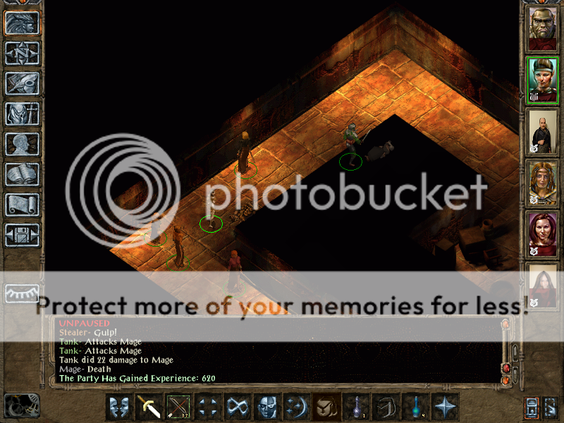 Having earned a modicum of Captain Swarmi's respect in the Elemental Lich battle, the Captain was willing to partner with me in planning the assault on Kangaxx. We concurred that the Death Fog x 3 Chain was worth trying again. But we also agreed that we still didn't have the L5 slots for Protection from Acid, and that an early Potion of Magic Shielding quaff wasn't worth the investment. The Captain and I went back and forth over the acid resistance problem when, finally, Arcadia butted in. "You two are insane! 75% resistance is enough. I'll be fine. If you're really stressed out about it, I can take a VT hitpoint buff, pre-battle." She had a point. And so it was.