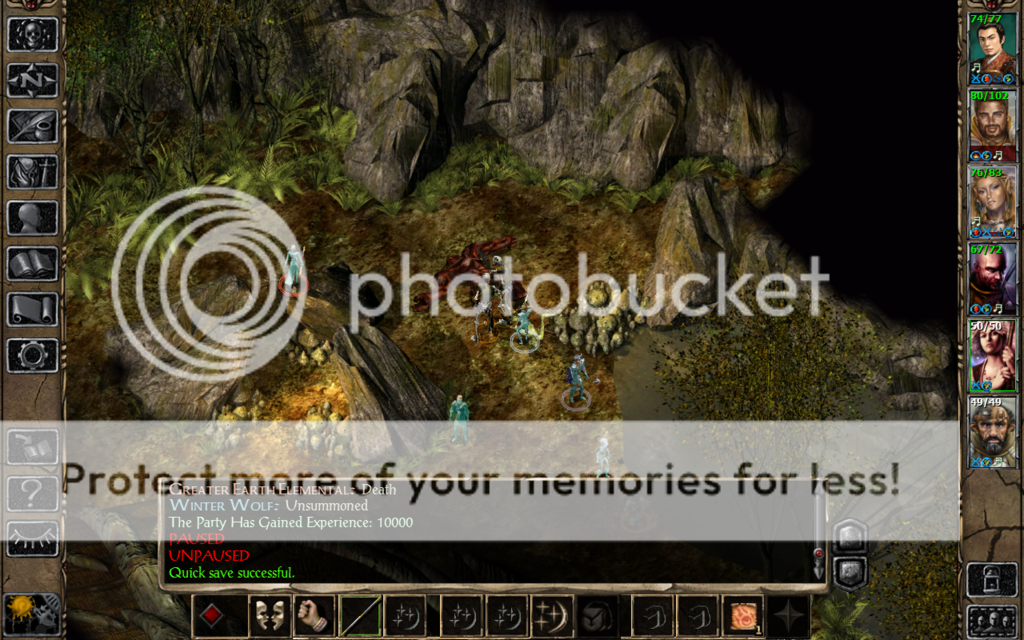 The other thing I will do when being cautious is to use vampiric touch and/or LMD on summons to boost HPs past the point of danger. Typically my mage characters will do that to make sure they survive Irenicus' dungeon before falling back into my bad habits ...